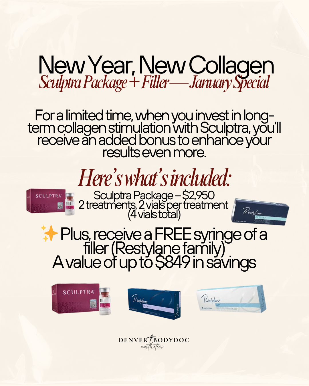 At Colorado Plastic Surgery Center, we prioritize your confidence and well-being with top-quality aesthetic care. Our selection of non-surgical treatments and rejuvenation services is designed to help you look and feel your best. As a special welcome, we’re offering $50 off an aesthetic treatment with Aesthetic Nurse Provider Lauren Dorsey!